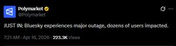 JUST IN: Bluesky experiences major outage, dozens of users impacted.