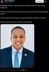 >>24506086 BREAKING: Murder-suicide at home of former Virginia Lt Gov. Justin Fairfax (D)