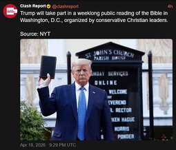 >>24514781 Trump will take part in a weeklong public reading of the Bible in Washington, D.C., organized by conservative Christian leaders.