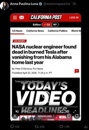 >>24530227, >>24530239, >>24530879 NASA nuclear scientist Joshua LeBlanc, 29, died in a fiery crash in his Tesla on July 22, 2025.