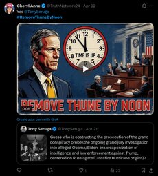 >>24530578, >>24530588, >>24530605 If John Thune can’t do what clearly needs to be done, then it’s time to dump Thune. #RemoveThuneByNoon