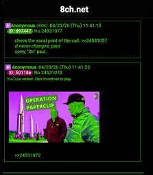 Disclaimer: this post and the subject matter and contents thereof - text, media, or otherwise - do not necessarily reflect the views of the 8kun administration.