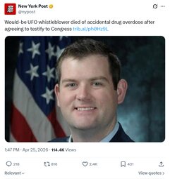 Would-be UFO whistleblower died of accidental drug overdose after agreeing to testify to Congress