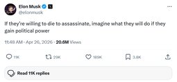 >>24542642 @elonmusk - If they’re willing to die to assassinate, imagine what they will do if they gain political power