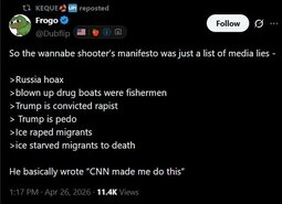 >>24543301 🚨 BREAKING: I found Cole Allen's archived tweets. Radicalized by same talking points repeated every day by the left.