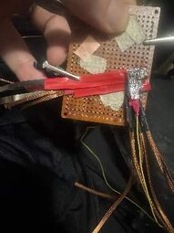 Well I finally got back to the electronics after about a month long detour real life interruption. All kinds of stuff slowed my progress on this session. But I got stuff done nonetheless. 0603 LED to 0805 resistor and some nickel strip leads coming off. Tested and working. This will be the indicator light for when the lowside mosfet comes on for one section of the custom BLDC motor controller. 0603 LEDs are extremely tiny for hand soldering and they don't take solder well either. I was originally going to go with blue LEDs but chatgpt said that would give off a unrealistic color through the silicone skin so orange would be better to give a more natural and less silicone skin piercing indicator light. Somehow I ran out of 470ohm resistors so I had to order more and I used my 200ohm ones instead for now. Which are a bit too bright. But chatgpt said I can diffuse the LED with a glob of silicone tinted black to darken and diffuse the light it gives off which sounds like a good idea to me. I am planning to use wire wrapping wire to come off of this assembly and tie into things. Somehow just attaching these two parts and testing it took me almost 3 hours. Between studying the schematic to refresh my memory on what is going on, visualizing placement options, overheating and destroying one LED, trying to locate the right color LEDs, shopping for replacement 470ohm resistors, researching and substituting in 200ohm resistors, discussing LED color options with chatgpt, figuring out how to solder a 0603 LED directly to a 0805 resistor part to part by hand, accidentally breaking a part off of its nickel strip lead and having to redo the connection, etc etc. All of it just crawls. Hard to stay patient with electronics sometimes and I do things in inefficient ways often. Learning what can and aught not to be done is tough from a patience perspective. But I insist on trial and error and experimentation which takes time. I just need to get into a daily habit to stick with it till completion. It's all complicated. Trying to figure out how to electronically isolate it all next. Thinking of using lamination plastic taped around it all so I can still see it all and visually troubleshoot. Also I'm considering how I can use solder wick braid as a heat pipe for each mosfet and run that over to the liquid cooling system. But it can't conduct. So thermally it can conduct but electrically it can't. Trying to figure out whether to create a barrier of micah or just thermal silicone for this and the routing needed. Also considering if I need mini coaxial shielded cable for the wiring of each or just regular wire wrapping wire when going from microcontroller to mosfets etc. Also trying to figure out if I need hall effect sensors or back emf reading or no feedback but my potentiometer and the implications of each option. Just so much to consider in all of this. And all of those considerations also slow things down even more as I have to make decisions on it all. It's quite overwhelming.