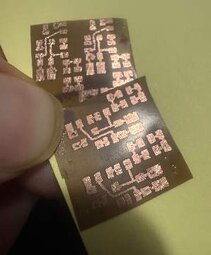 The first board I left etching for a couple hours unattended which was a mistake. It was unusable. A ton of the copper under the toner was missing which is called undercutting. I left it etching for too long which causes this.