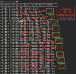 Also, the e+(2n*m) pattern includes a[t]=(N-1) which is an easy reference point.