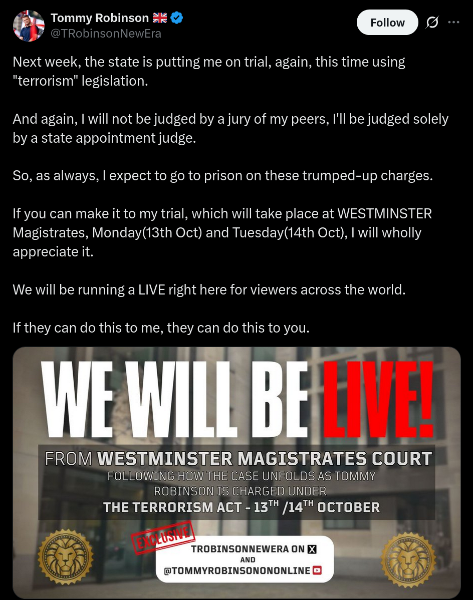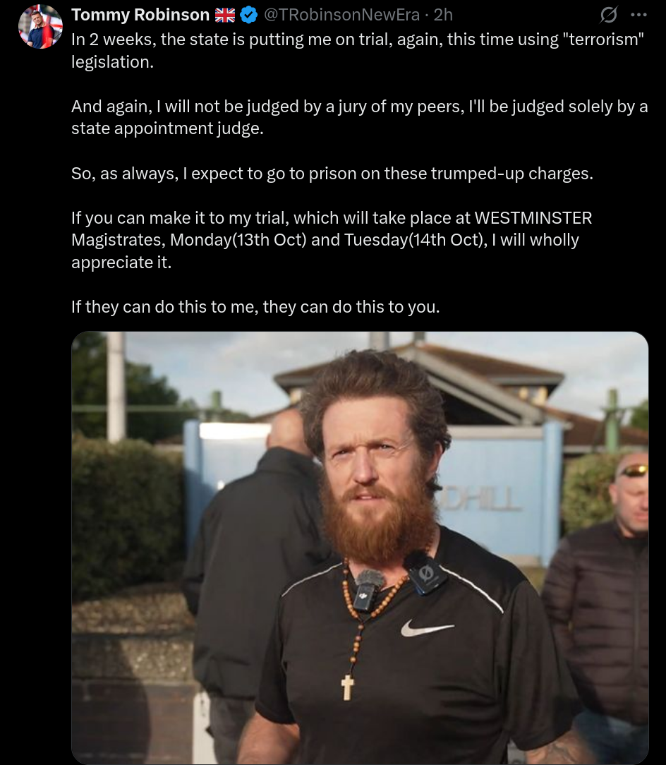 >The prison that is holding political prisoner Tommy Robinson hostage continues to block the emails he sends me.