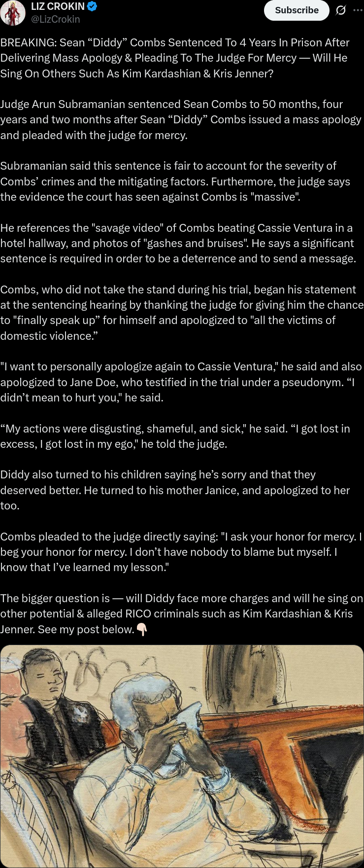 You will not be tried in the court of public opinion Mr. Combs.