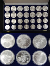 It's these coins, yeah. The full set has 14 each of the $10 and $5 coins. This pic is from ma-shops, where you can always find the sets (if you have a lot of cash to spend!) So far I have 11 of the $10, and 4 of the $5 coins. The most I ever spent on a $10 coin is 34.55 EUR (49.95/oz) and now they want over twice as much! But I'm getting near the very end of my spending cash, so I have to think carefully about what I'm buying. I'm not a big fan of paying high premiums on common junk silver that was minted in the millions. Just a week ago I did a lot better. I bought the equivalent of 1/3 kilo of silver in collectible 90% coins, with relatively low mintages (and 4 of those are even proof coins), for around 3 EUR above spot. So I don't feel quite right about dumping the last of my cash on common junk that's 8-9 EUR above spot. I think I'll just wait and see what happens next week.