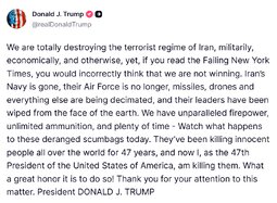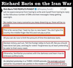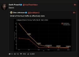 Are these the words of a confident man who is winning? The Strait will remain closed until the pain makes Trump bend the knee, or tailspins until he is removed from office. Attempts to take the Strait by military force will result in enormous US casualties to no effect. Letting the status quo fester will result in collapse of the world markets and worldwide financial crisis.