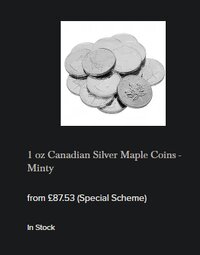 They also have some canada 1976 olypics $10 coins for 114.77 (79.39/oz), but not many in stock. I like these, because they're higher purity (.925) and they're commemoratives that didn't circulate, so no loss of weight. I already have like a dozen of them, plus a few of the same $5 coins.