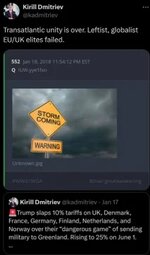 MJT (T.me) A few days ago, Putin’s special envoy Kirill Dmitriev (https://x.com/kadmitriev/status/2012621940402368862?s=46) shared a Jan 18 Q Delta “STORM COMING. WARNING.”