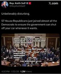 >>249405 MJT (T.me) 57 House Republicans just joined almost all the Democrats to ensure the government can shut off your car whenever it wants.