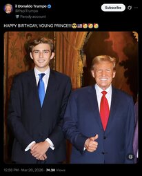 >>256758 FoxNews (TwiX) HAPPY BIRTHDAY! Barron Trump, the son of President Donald Trump and First Lady Melania Trump, turns 20 today.
