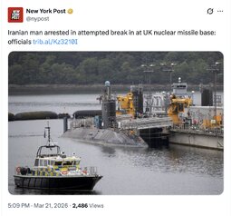 >>257019 NYPost (TwiX) Iranian man arrested in attempted break in at UK nuclear missile base: officials