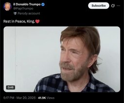 >>256756 ED (TwiX) 🚨 BREAKING: Chuck Norris has passed away at the age of 86
