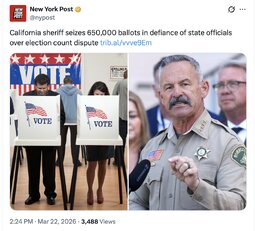 >>257194 NYPost (TwiX) California sheriff seizes 650,000 ballots in defiance of state officials over election count dispute
