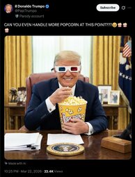 >>257180 DJT (TruSoc) Now with the death of Iran, the greatest enemy America has is the Radical Left, Highly Incompetent, Democrat Party! Thank you for your attention to this matter. President DJT
