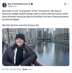 >>257229 AnnaPaulinaLuna (TwiX) She wasn’t in the “wrong place” at the “wrong time”. She was an American college student taking a walk in public with her friends, which every American should be able to do without the fear of being murdered by criminal illegals.