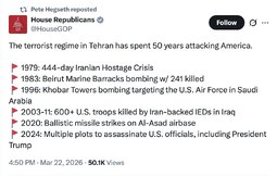 >>257234 HouseOfRepublicans (TwiX) The terrorist regime in Tehran has spent 50 years attacking America.