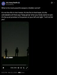 >>257236 USArmyPac (TwiX) What is the most powerful weapon a Soldier carries?