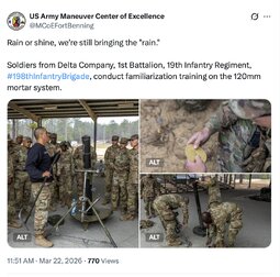 >>257195 USArmyManueuverCenterOfExcellence (TwiX) Rain or shine, we’re still bringing the "rain."