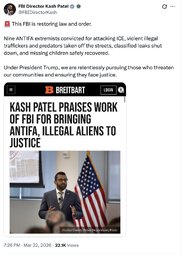>>257230 FBIDirectorKashPatel (TwiX) 🚨 This FBI is restoring law and order.