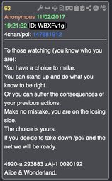 I propose that there will not be anything posted to board that is personal in nature, Please No doxxing anyone, Anything that will harm board members/anons or makes Trump, Admin, or Military look bad. Clowns have taken over so many spots on the net to make Republicans/Trump look bad. EVERYONE is WANTED and WELCOME to post up.. the more the merrier, but cannot optically look bad for the board/Trump/US/our Foreign Allies/Peace to the world. That IS our goal, PEACE. God Bless, one day this will just be history and humanity/world will be free & reunited again, that is the goal, to unite humanity.. until then we must buckle down and see this thing through to the fullest. I would like to see our OG anons back if they can/care/want to and re-engage in the fun banter & problem solving that was once 8chan/8kun