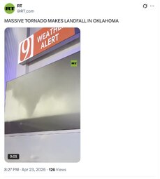 >>261559 SNN (T.me) UPDATE: Homes have been FLATTENED in Enid, Oklahoma following a massive tornado slamming directly into the town