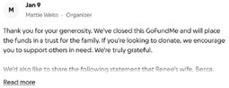 >>24107903 $1.5 Million raised. We’ve closed this GoFundMe and will place the funds in a trust for the family.