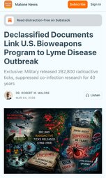 >>24341535, >>24341588 U.S. Bioweapons Program released 282,800 radioactive ticks, suppressed Lyme Disease co-infection research for 40 years