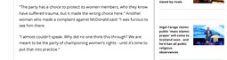 "The party has a choice to protect its women members, who they know have suffered trauma, but it made the wrong choice here." Another woman who made a complaint against McDonald said: "I was furious to see him there.