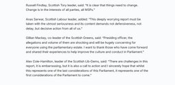 “Their gender ideology is deeply harmful to children. One of their MSPs, Maggie Chapman, wants kids as young as eight to be allowed to ‘explore’ changing their gender. The fact that Jenny Gilruth was so desperate to get Ross Greer’s sign-off and made civil servants and spin doctors beg him for his approval will shock and alarm parents who just kids to be allowed to be kids.
