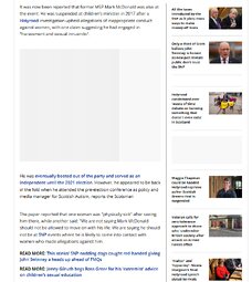 The paper reported that one woman was "physically sick" after seeing him there, while another said: "We are not saying Mark McDonald should not be allowed to move on with his life. We are saying he should not be at SNP events where he is likely to come into contact with women who made allegations against him.