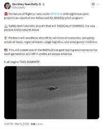 >>24362254 @SecDuffy The future of flight is here under @POTUS with eight new pilot projects as a part of our Advanced Air Mobility pilot program