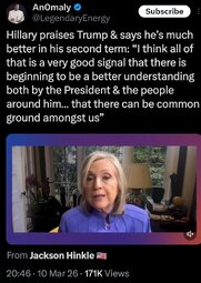>>24367275 Hillary praises Trump & says he’s much better in his second term