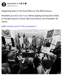 >>24388896, >>24388931, >>24388938 @DanScavino - President @realDonaldTrump will be signing an Executive Order to formally launch a Fraud Task Force led by Vice President JD Vance.