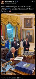 >>24389021 President Trump signs an Executive Order putting @VP in charge of the new Anti-Fraud Task Force 🇺🇸