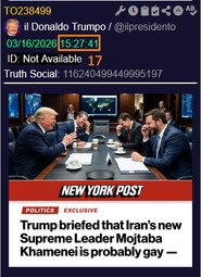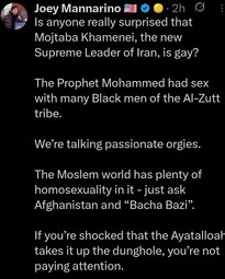 >>24387441, >>24387445, >>24387569 GRRR Morning-I did NOT have that Iran’s new Ayatollah Mojtaba Khamenei is gay on my 2026 bingo card….