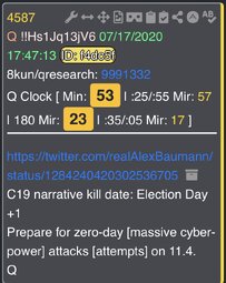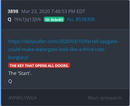 Qresear.ch/q-posts, Qanon.pub, Qalerts.pub, OperationQ.pub, Qposts.online, 8kun.top/qresearch, Qalerts.app, Qalerts.net, douknowq.com/134295/Q-Anon-Pub.htm8ku
