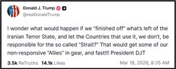“Imagine an Iranian president coolly presenting a ‘kill list’ to a foreign ambassador: the US president, Congressional leaders, top Generals,” he wrote on X. “And then declaring, without hesitation: ‘We will eliminate them, one by one.’” (Wow, that’s what they do, they’ve threatened Trump’s life over and over again!)