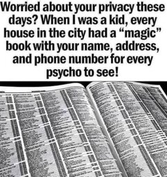 Is anyone here old enough to remeber when telephone book that had names, address and phone number of all your neighbors dropped off at your door every year, then you could just call or go directly to the address.