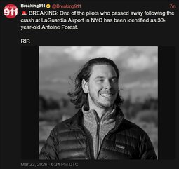 🚨 BREAKING: One of the pilots who passed away following the crash at LaGuardia Airport in NYC has been identified as 30-year-oldAntoine Forest.