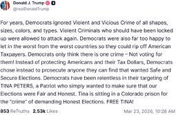 >>24416893 @realDonaldTrump For years, Democrats ignored Violent and Vicious Crime of all shapes, sizes, colors, and types. Violent Criminals who should have been locked up were allowed to attack again. Democrats were also far too happy to let in the worst from the worst countries so they could rip off American Taxpayers.