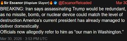>>24450265, >>24450329 ICYMI: Secretary Hegseth Details a Powerful Message from His Trip to See U.S. Soldiers/Epic Fury Update