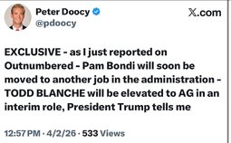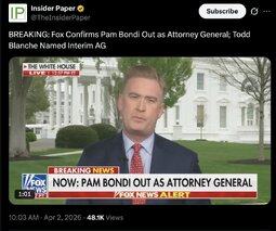 >>24456505 BREAKING: Fox Confirms Pam Bondi Out as Attorney General; Todd Blanche Named Interim AG