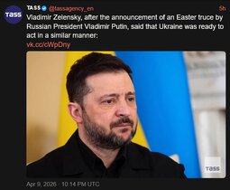 >>24482653 From 16:00 April 11 to end of day April 12 Putin announces EASTER TRUCE in Ukraine - Assumes Ukraine will follow suit