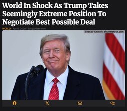 >>24483061 @realDonaldTrump The Wall Street Journal, one of the worst and most inaccurate “Editorial Boards” in the World, stated that I “declared premature victory in Iran.” Actually, it is a Victory, and there’s nothing “premature” about it! Because of me, IRAN WILL NEVER HAVE A NUCLEAR WEAPON and, very quickly, you’ll see Oil start flowing, with or without the help of Iran and, to me, it makes no difference, either way.